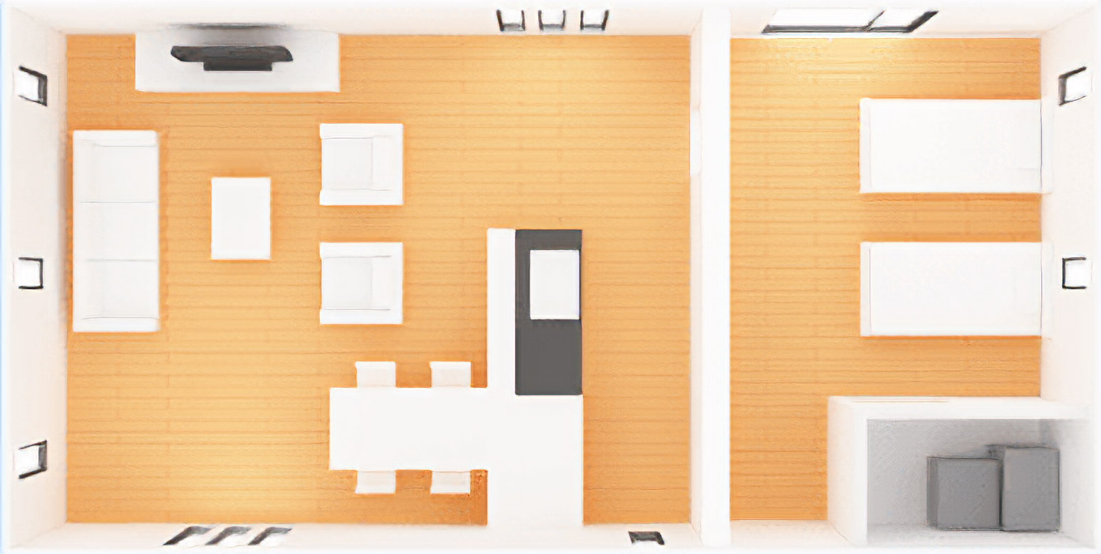 大規模な改築をせず、もっと手軽に空間構成を変えられる可動式の間仕切りや収納もご用意。 配置を変えることで柔軟にスペースを仕切れます。