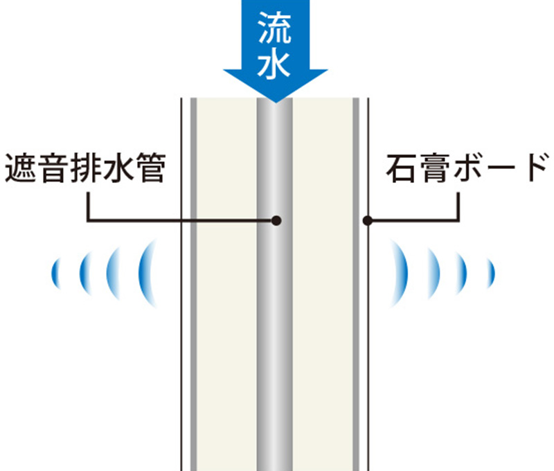 遮音排水管を使用した遮音設計で、深夜の2階トイレの排水音を抑制。