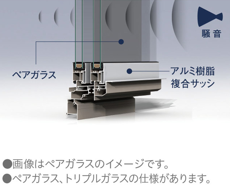 アルミ樹脂複合サッシを採用し、優れた遮音性能を実現。