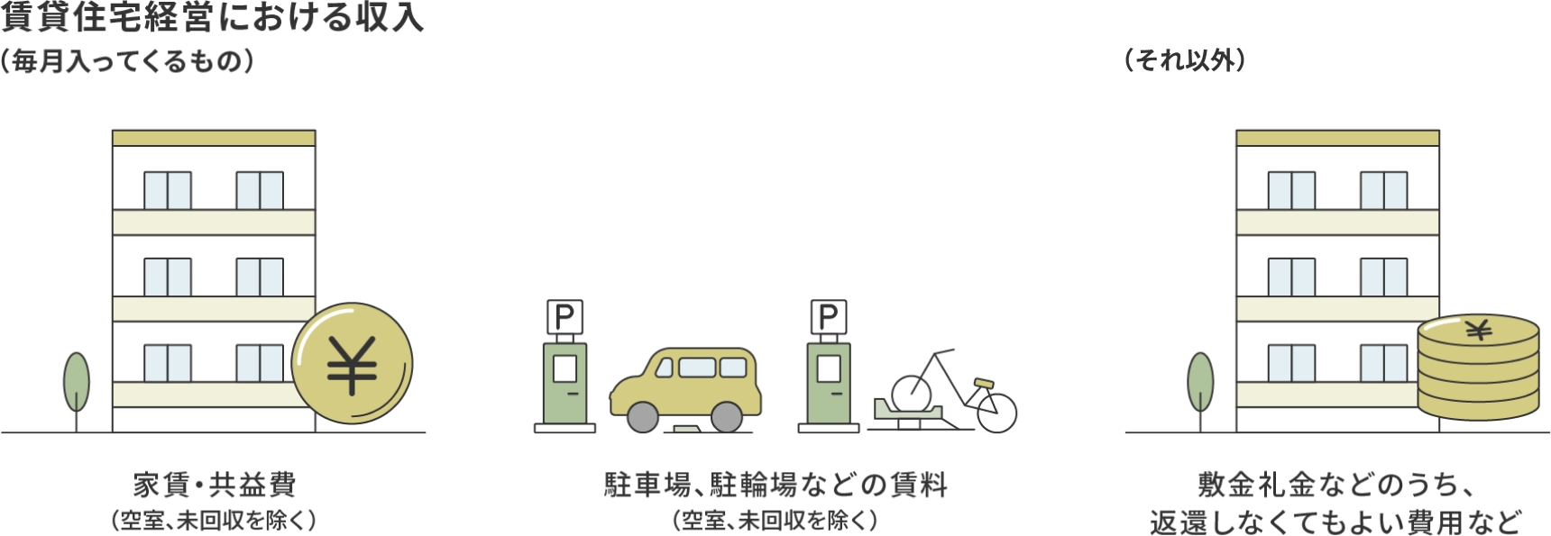 家賃、共益費、駐車場・駐輪場などの賃料 (空室、未回収を除く)