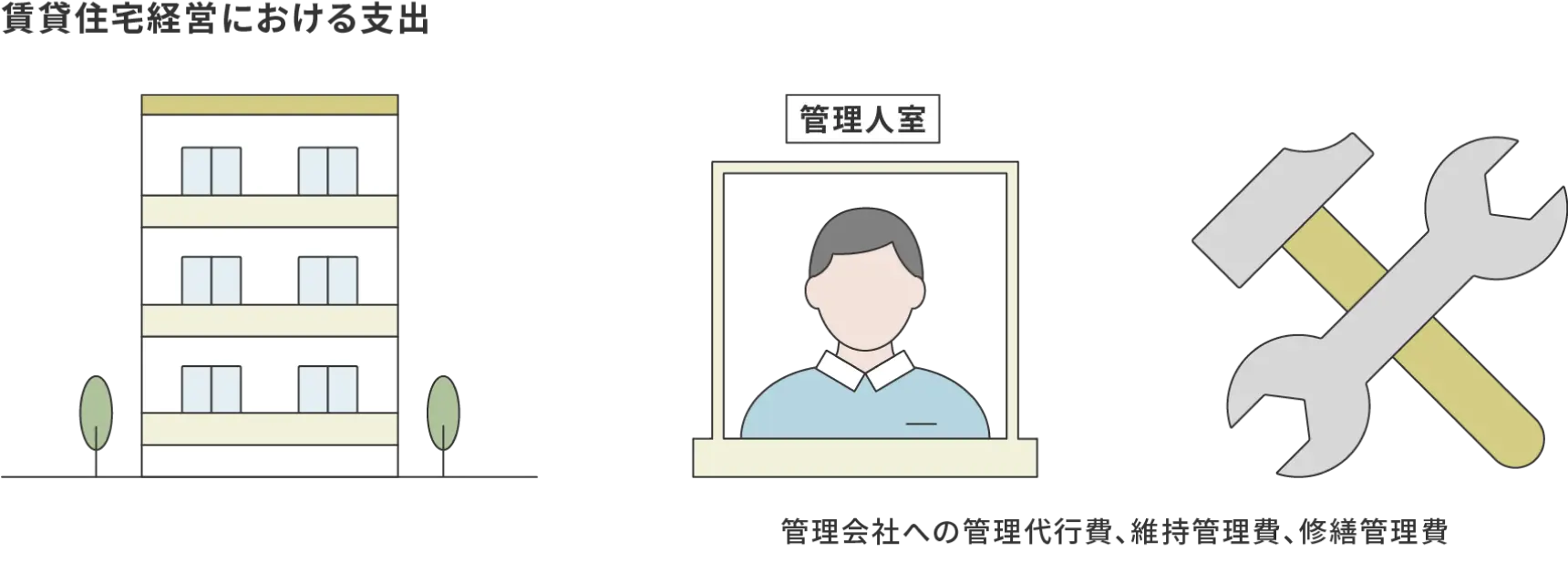 管理会社への管理代行費、維持管理費、修繕関連費 など