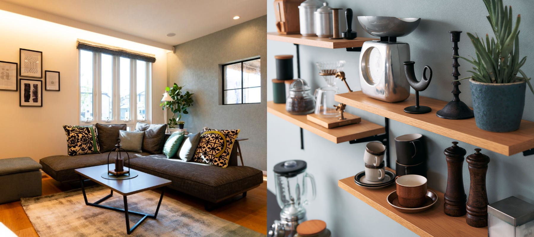 間接照明/アクセントクロス/飾り棚/リアルパネル