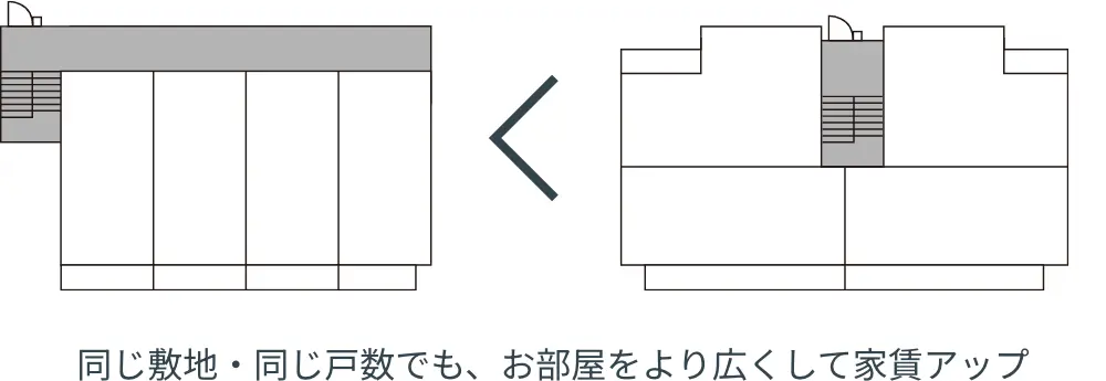 全体の建築面積はそのままに賃貸部分の面積を拡大。