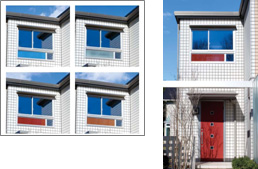 開口部には、新開発の「カラーパレットウインドウ」を採用。左右非対称で構成したデザインで、開口部下部のペアガラス内側にメッシュ状の特殊カラーセラミックプリントを施しました。玄関ドア色と合わせたカラーコンビネーションにより、「クールカジュアル」から「ナチュラル」まで幅広いテイスト(4色)に対応できます。