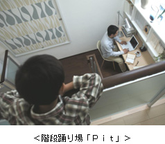視線の高さを変えることにより親が自分の世界を確保でき、家族の様子も把握可能な「Pit」(階段踊り場)を採用。親の日常生活を手本として見せることで子どもの興味と関心も刺激します。また太陽光発電の発電量や消費電力量などを表示できる「光熱費ナビ」で、家族全員での環境学習も促進します。