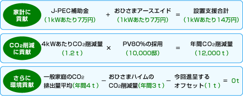 今回の『おひさまハイムキャンペーン』においては、PV搭載住宅でNo.1である「3つの理由」を基に、家計と地球のための環境応援プラン「おひさまアースエイド」を実施します。