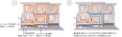 さらに、「快適エアリー」は、エネルギー効率の高いヒートポンプ式の採用と深夜電力を活用するタイマー運転制御機能で、年じゅう、家じゅう「あったか+さわやか」な快適室内空間を省エネ・省コストで実現する独自の新空調システムです。