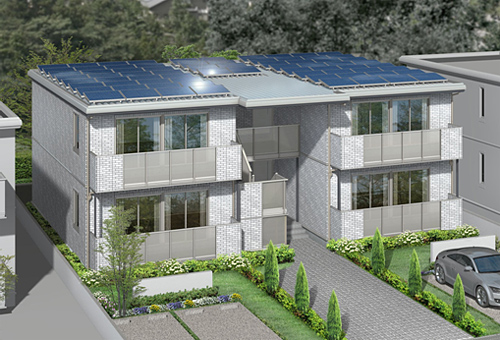 Ⅲ.大容量PVを標準搭載、入居者メリットを向上政府は、環境・経済問題を背景にPV普及を推進。太陽光発電の新たな買取制度もスタートさせました。このような状況を受け、『レトアかげやまモデル』では、家計と地球のための環境応援プラン「おひさまアースエイド」のPV設置支援をアパートの分野でも積極的に展開します。