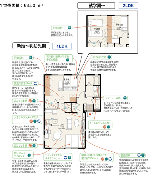 ここまで、子育てや学習に配慮した仕様が導入されたアパートは、賃貸市場では珍しく、良質な入居者の確保はもちろん、その入居者に長期間にわたってお住い続けていただけるという点で、他の物件との差別化、競争力を確保できます。 Ⅱ.「可動収納」で子どもの成長に合わせた間取りを実現