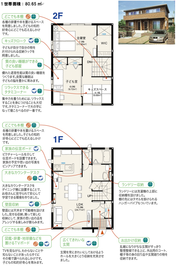 ■「レトアかげやまモデル」開発の背景国土交通省による「民営貸家に居住する世帯人員別世帯数と延床面積別戸数」の調査によると、わが国に現状ある1256万1000戸の貸家のうち、2世帯以上の世帯が居住する貸家は602万6,000戸、その一方で50m²以上の大型貸家は434万6,000戸であり、168万戸不足していることになります。 ■『レトアかげやまモデル』の概要Ⅰ.アパート初、「かげやまモデル」のノウハウを導入『レトアかげやまモデル』では、(1)「どこでも学習できる場所づくり」(2)「生活習慣を支えるしかけ」(3)「家族コミュニケーションの演出」という、?山英男教授の子育てノウハウを積極的に導入しています。