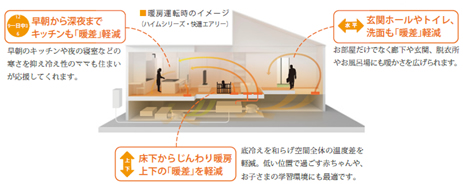 次世代省エネ基準をクリアした、高気密・高断熱の構造躯体を活かした独自の空調システム「快適エアリー」(鉄骨系)もしくは「空気工房」(木質系)を標準採用。一年中、家じゅうが心地よい快適な温熱環境と空気環境を実現します。第一種換気システムに組み込まれた高性能な除塵フィルター・花粉フィルターは花粉99.9%、粉塵96.0%、Nox80.0%、カビ菌96.0%をカットし、高い除湿効果(20リットル以上)も発揮します。ホコリやアレルギー原因物質の侵入を防ぎ、花粉や黄砂の季節も健康的な室内空気環境を実現します。
