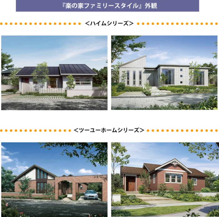 『楽の家ファミリースタイル』は、現在住宅市場で注目されている若年層に対し、「子育て主婦を応援する家」をテーマに開発。具体的には、(1)家事をサポート、(2)快適な温熱環境と空気環境を実現、(3)大容量太陽光発電(以下PV)搭載で光熱費ゼロも可能、(4)メンテナンスコスト削減で将来も安心、(5)子どもが賢く育つ住環境を提案といったセキスイハイムの強みを活かした特徴を訴求し、平屋需要の掘り起こしを狙います。