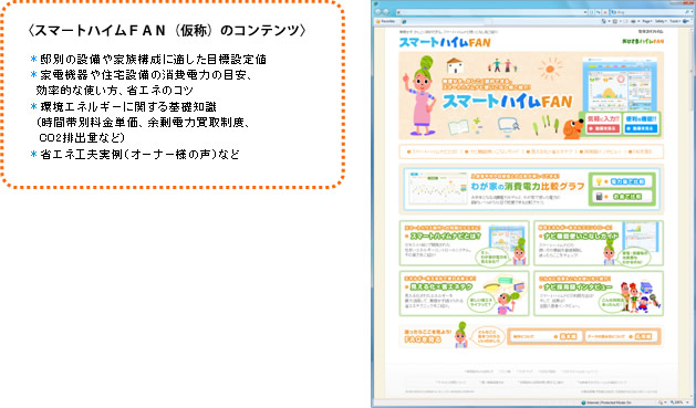 具体的には、2006年から、Web上で展開してきた環境コンサルティングサービス「おひさまハイムFAN」を一新。「スマートハイムFAN(仮称)」を今秋オープンします。従来までは光熱費などをお客様が入力する必要がありましたが、「スマートハイムFAN(仮称)」では「スマートハイム・ナビ」と完全に連動することで、自動でデータが入力されます。ご希望のお客様には平均値との比較やコンサルも受けられるようにします。