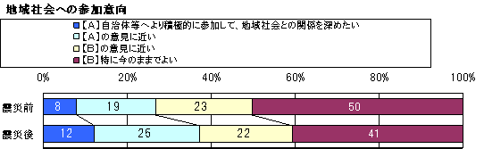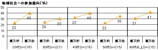 「地域社会との関係を深めたい」は、震災前27%が震災後は37%へ10ポイント増加。