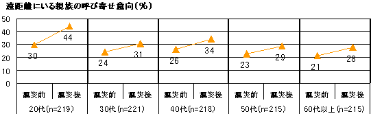 震災後、特に若い世代ほど、親族とできるだけ近くに住もうという意向が増えています。