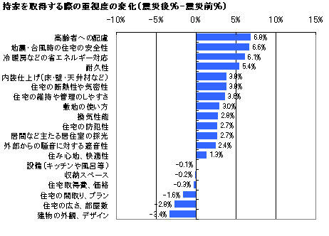 震災後、住まいに対する価値観、重視ポイントが変わったといわれます。まず一般の意識変化を探りました。