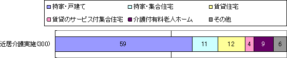現在、近居で介護を実施している人のうち、介護をする以前から隣居・近居をしていた「もともと隣居・近居」は81%。介護のために親を「呼寄せ、自分達がいく」は14%。近居介護の実施者は、いざとなって呼寄せて近居する方は少数で、既に近居の状況にある方が中心。