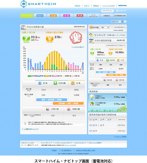 さらに、今年4月には大容量PVとHEMSに加え、電力使用のピークカットや一層の光熱費削減に効果が期待される家庭用蓄電池を標準採用した「進・スマートハイム」を発売し、商品力強化を実施。今回の『スマートハイム・ナビ』のバーションアップは、家庭用蓄電池の導入にあたりその有効的な活用をしていただくことで、お客様満足度の向上と、企業の社会的責任を果たすことを目的としています。