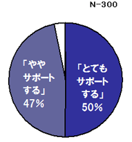 「「快適エアリー」「空気工房」を搭載した当社の住宅が健康的な生活をサポートしますか?」という質問には、「とてもサポートする」という回答が50%、「ややサポートする」が47%となり、前向きな評価が97%に達しました。