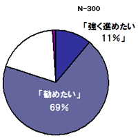 「戸建て住宅を検討している方に対して「快適エアリー」「空気工房」を搭載した住宅を勧めますか?」との問いには、「強く勧めたい」という回答が11%、「勧めたい」は69%となり、前向きな回答が合計80%となりました。
