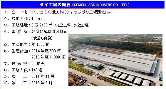 2011年 7月 :タイ住宅事業本格展開へ総額50億円の設備投資決定