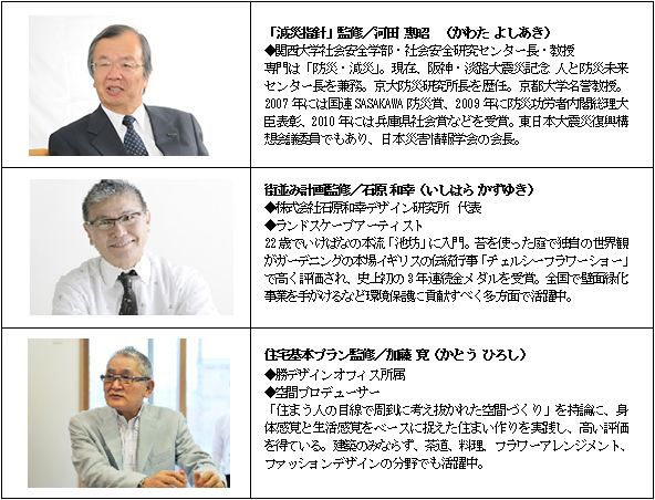 工場生産による強靭なユニット構造体をベースとした建物そのものの災害に対する強さに加え、建物内部の安全性への配慮、「進・スマートハイム」の採用による非常時における電力の確保、街づくり計画に「共助」配慮を導入し、住民同士の交流を促進する仕掛けなど、河田惠昭教授の研究ノウハウを活かした「減災力」を高めるソフトを盛り込み、自然災害に対してより高度な安心・安全をご提供する街づくりを推進します。