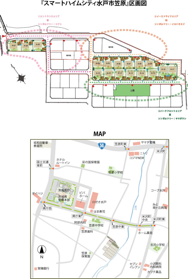 セキスイハイムグループでは、PV+HEMS+蓄電池の3点セットを標準搭載する分譲住宅事業「スマートハイムシティ・プロジェクト」を全国で展開しています。『スマートハイムシティ水戸市笠原』は、茨城県における同プロジェクトの第一弾であり、大容量PVによる「創エネ」と、PVで発電した電力や深夜電力を貯める蓄電池による「蓄エネ」、さらには電力の需給状況を「見える化」するHEMSによる「省エネ」を可能とした「進・スマートハイム」による街づくりを実施します。 お客様にとっては環境に優しく、光熱費が少ない経済的な暮らしを享受できるほか、非常時の停電でも電力を一定時間確保できることなどがメリットとなります。また、住戸や植栽への細やかな配慮による防犯への取り組みや、住民同士のコミュニティ形成の促進による「減災」への取り組みなど、他の分譲地とは差別化できる新たな要素を盛り込んだ価値ある街づくりを推進します。