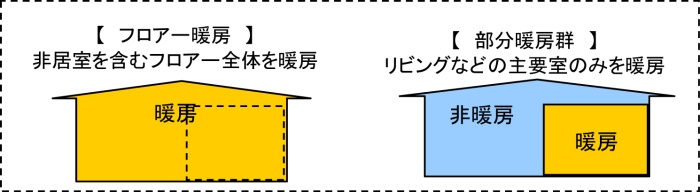 ・部分暖房群(築20~26年で、暖房器はエアコン、コタツ、ホットカーペットなどを利用し、かつリビングなどの主要な部屋しか暖房していない)