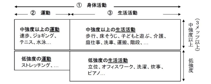 ※1、2 身体活動・運動・生活活動について「健康づくりのための運動指針2006(エクササイズガイド゙2006)」より