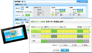 また、家電機器の遠隔操作/モニタリングのための共通規格「ECHONET Lite(エコーネットライト)」対応の「スマートハイム・ナビ」の機能を活用し、快適エアリーがタブレット端末でも操作可能となりました。直感型操作が可能になったことによって、今までよりも気軽にタイマー設定を活用でき、更なる省エネが促進されることが期待されます。お客様からの要望の多かった、外部からの遠隔操作機能も同時に追加しました。