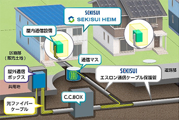 積水化学グループの持つインフラ技術や分譲地開発のノウハウと、大規模マンションだけでなく小規模集合住宅のインターネット接続サービスも数多く手がけるつなぐネットの通信技術や施工実績、ノウハウを融合し、光配線方式での戸建分譲地向け一括インターネット接続サービスに適した通信網を構築しました。