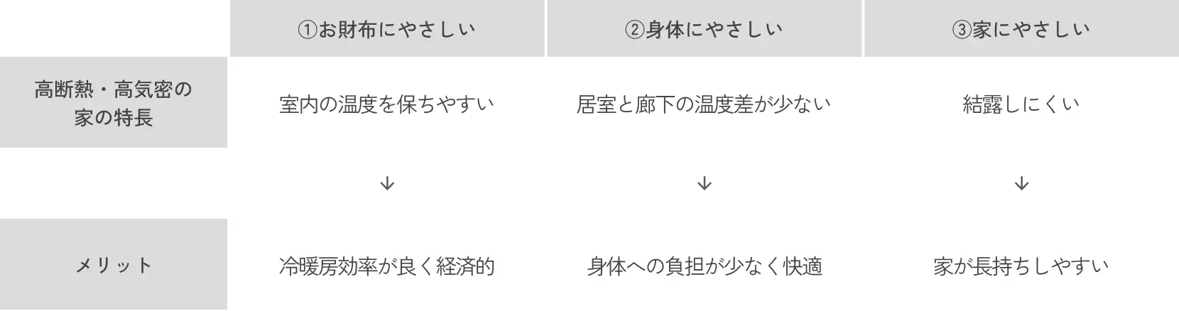 高断熱・高気密の木の家のメリットは大きく3つあります。