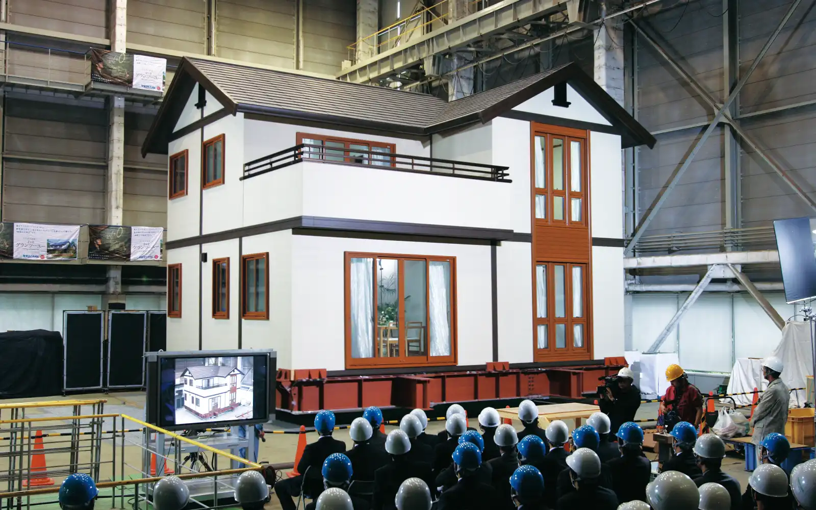 作業環境の差は、品質の差にあらわれます。たとえ経験豊富な職人でも、高所作業や過酷な屋外環境の中で100%の能力を発揮するのは難しいもの。セキスイハイムの工場では、通常は高所で行う屋根の組み立てなどを、安定した地上で行うため、正確な技術を引き出します。
