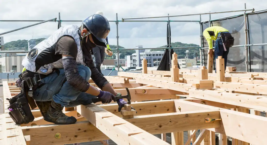 セキスイハイムは、風雨の影響による部材などの損傷を防ぐため、家づくりの大半を屋根のある工場で行います。雨ざらしの構造体は将来の性能劣化の原因にも。木の家だからこそ、できるだけ雨に濡らさずにつくることで品質の高さを実現しています。