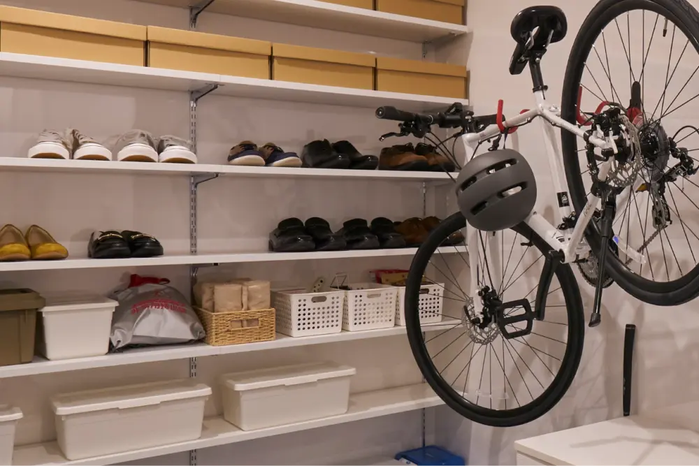 土間収納や小屋裏納戸でアウトドアグッズや季節のレジャー品もたっぷり収納できます。