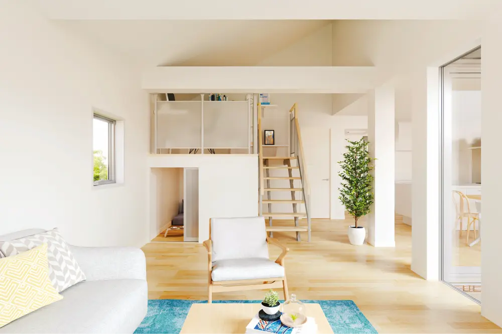 開放感あふれるルーフバルコニーでとっておきの時間を楽しめる、1.5階建ての平屋。