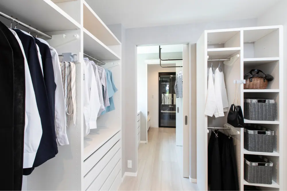 サニタリーから直接WIC、寝室へと続く平屋ならではの動線。朝の身支度もスムーズに進みます。