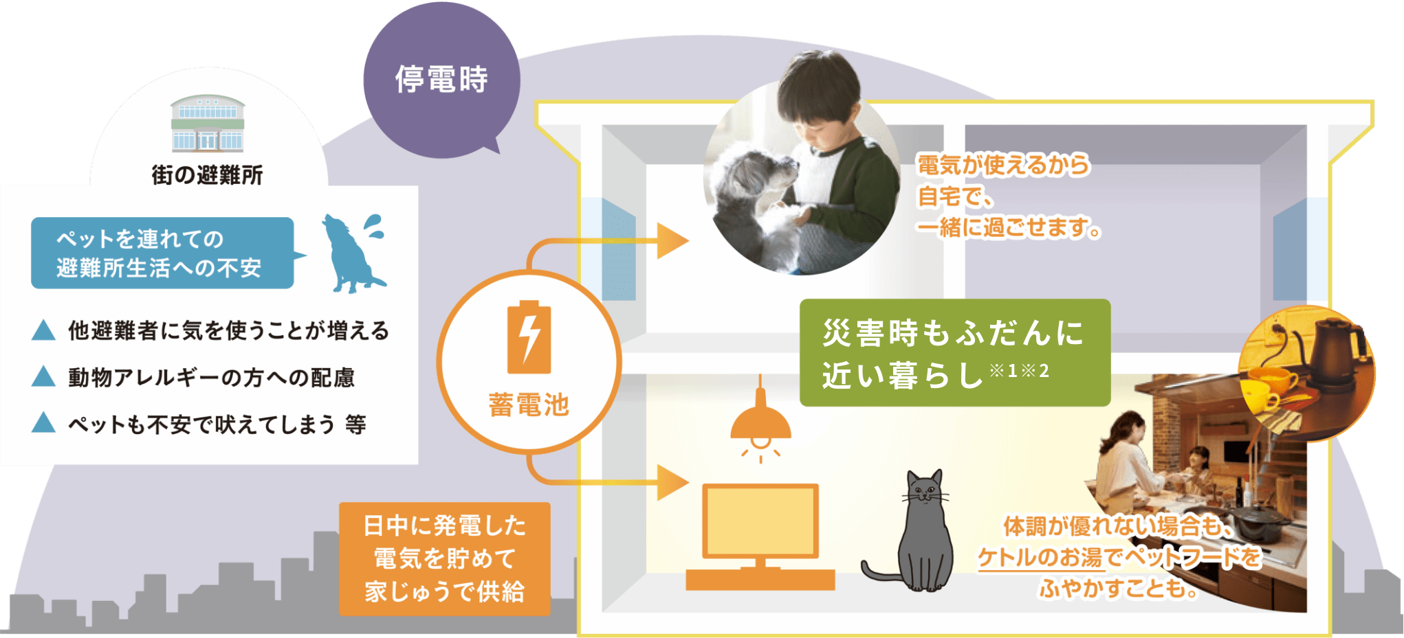 災害時にペットと一緒にいられる在宅避難についてもご覧ください。