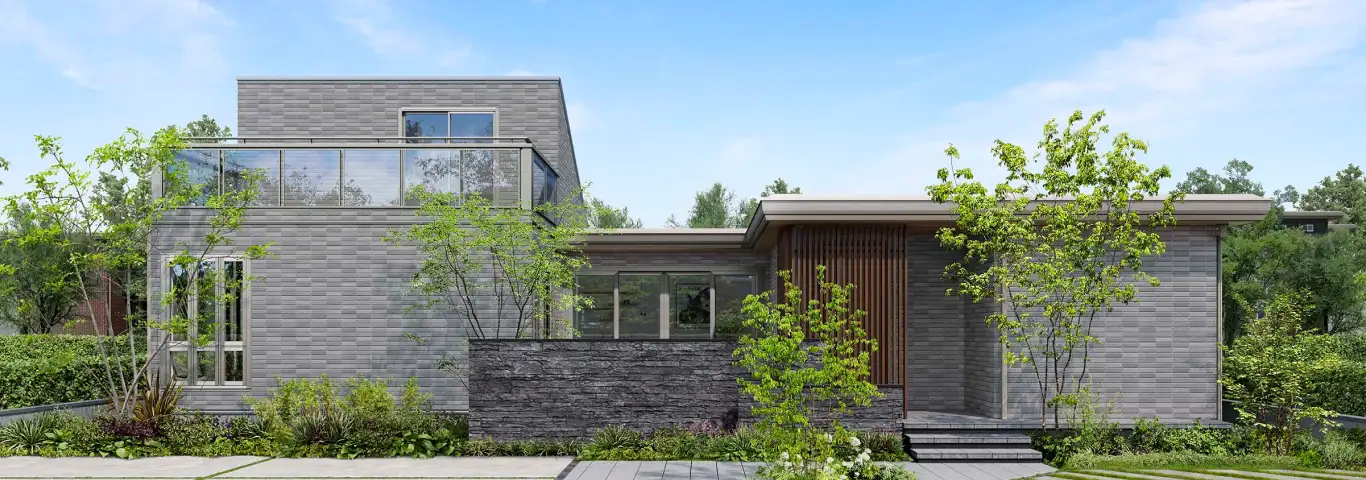 シンプルモダンな外観とダークトーンの外壁や瓦が織り成す上質で落ち着いた佇まい。